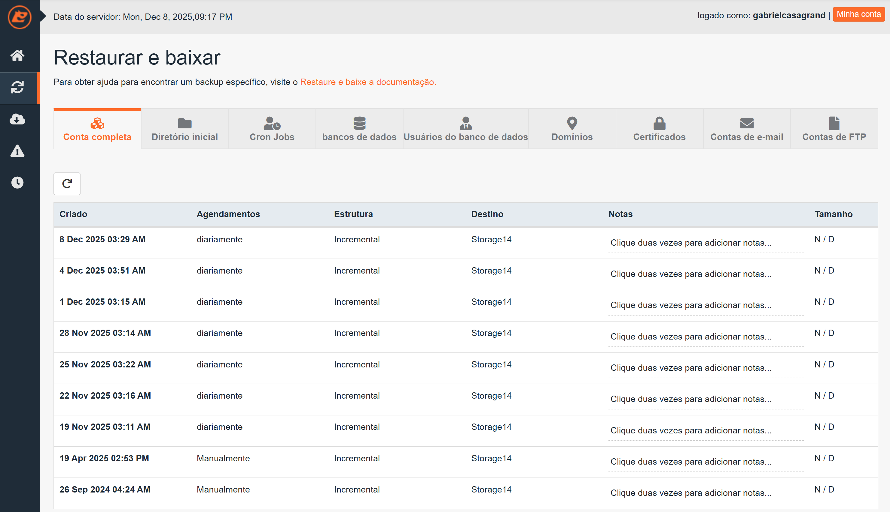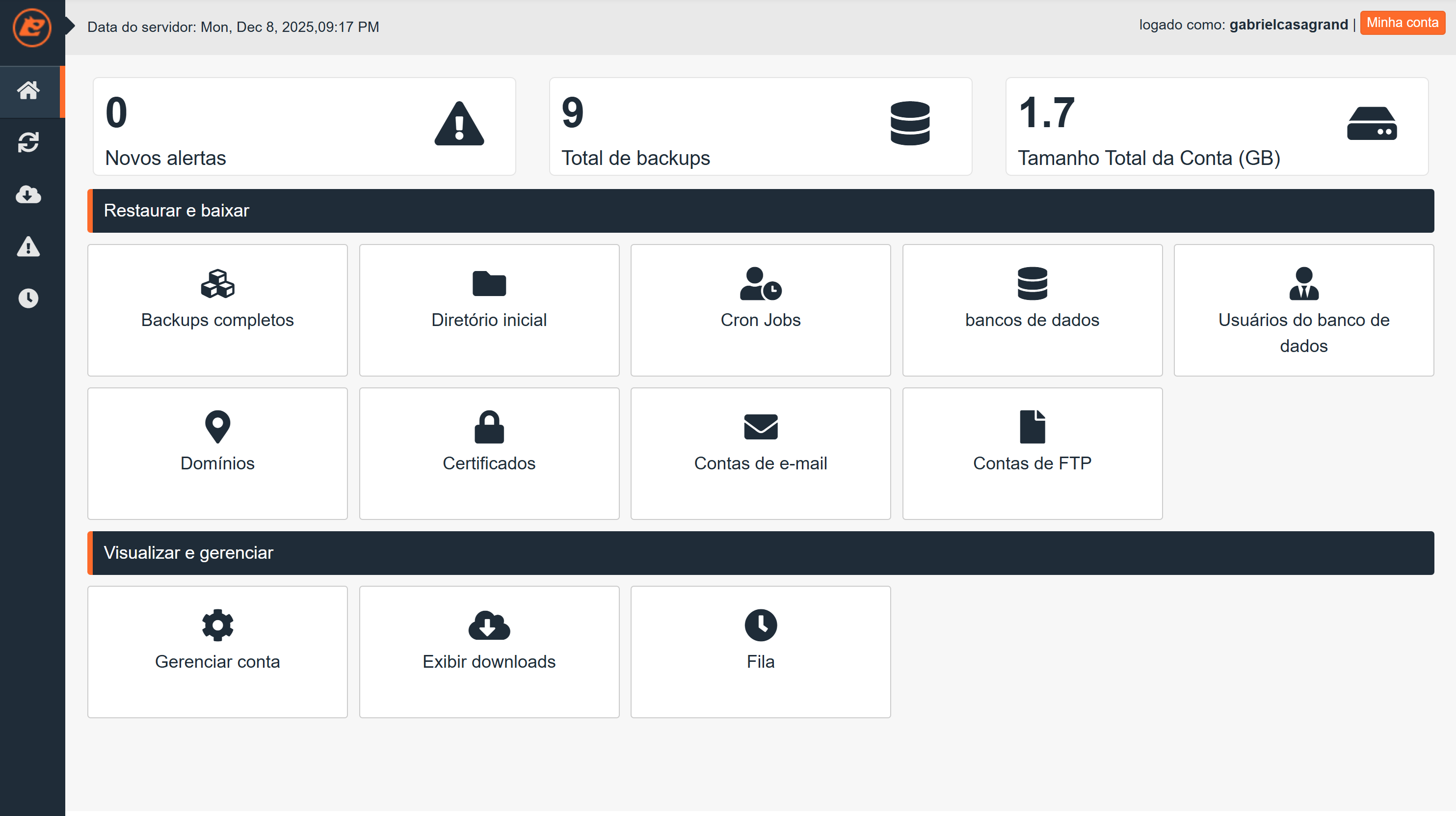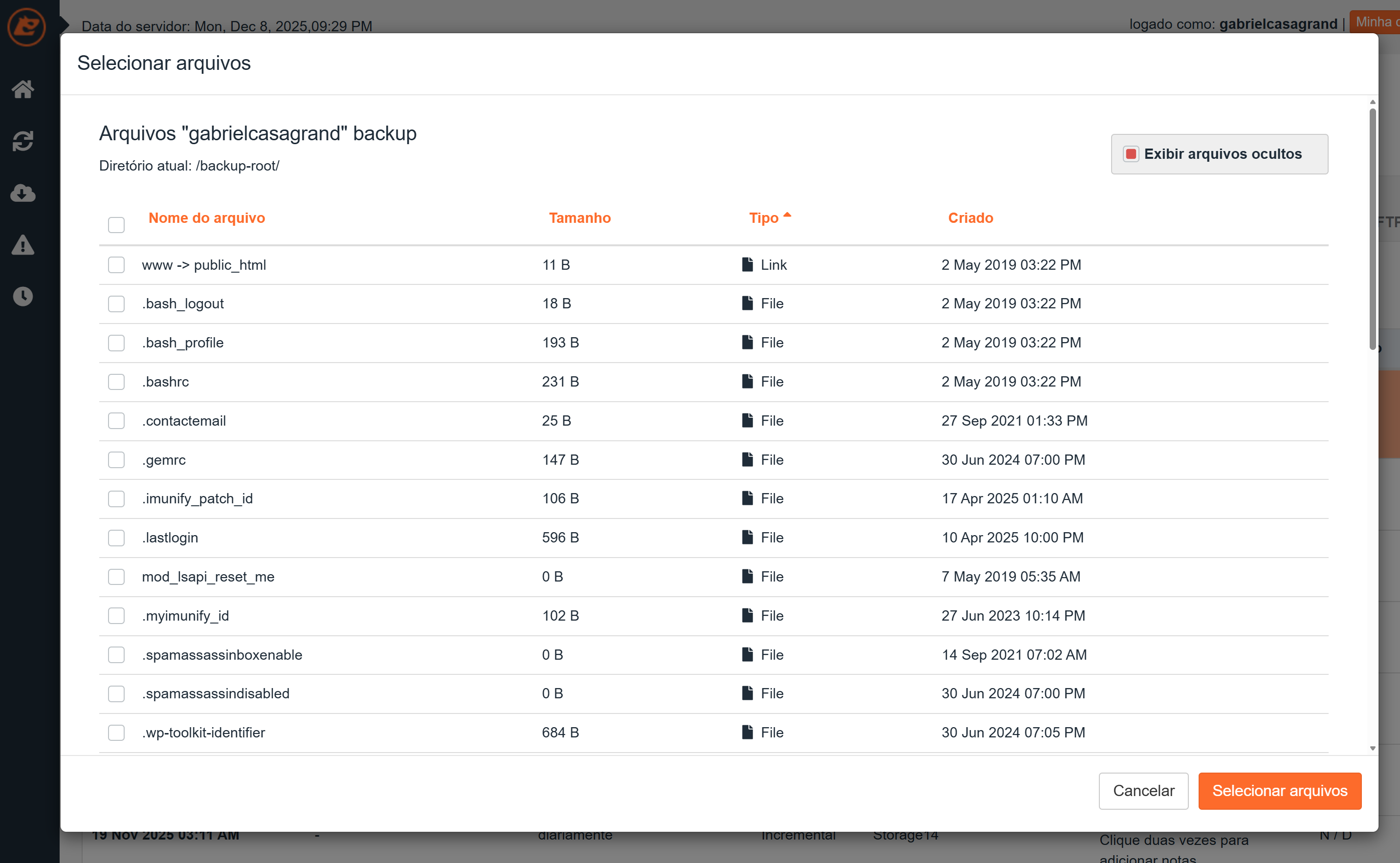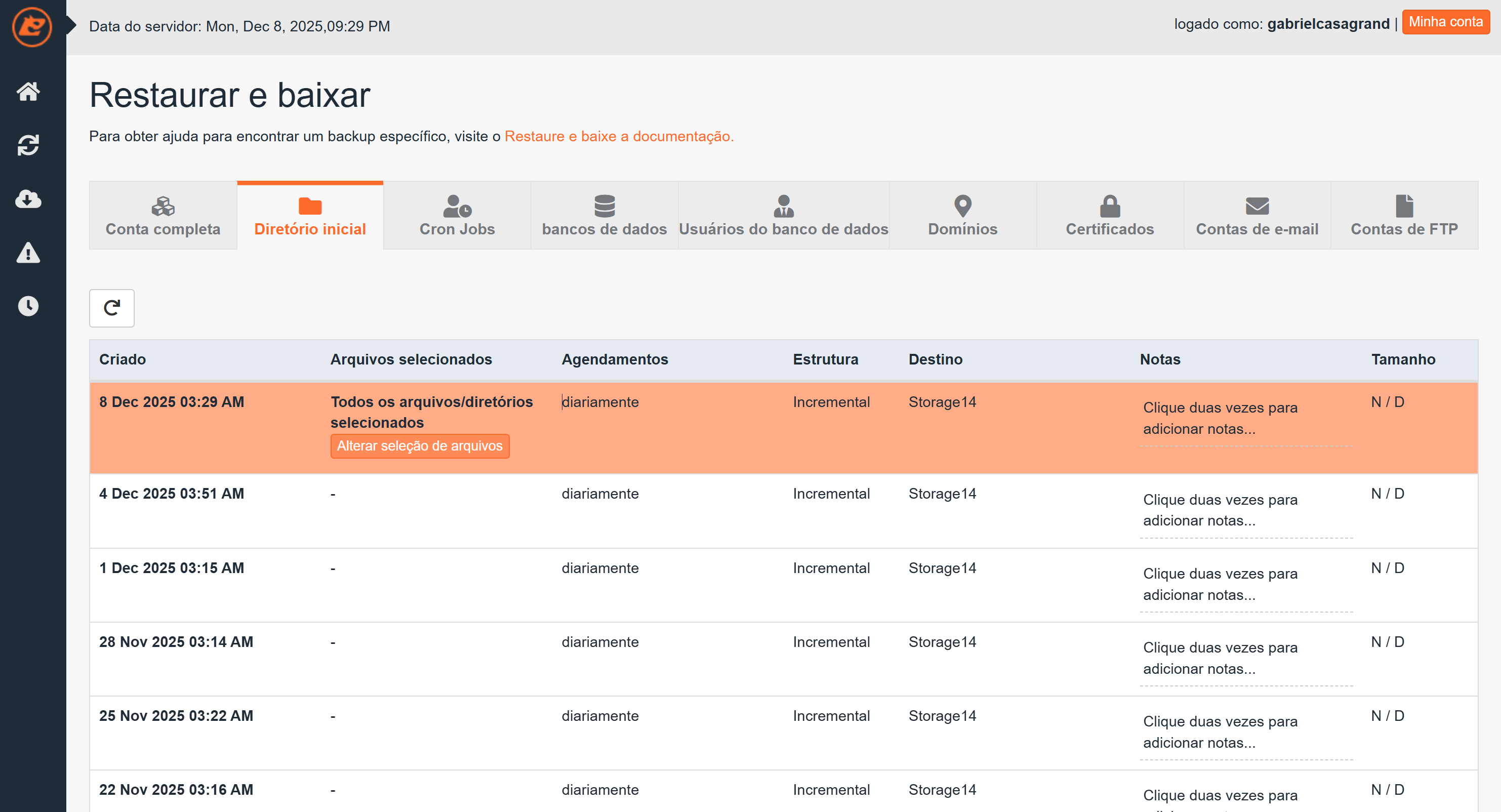 La restauración completa devuelve toda la estructura del hosting al estado exacto de la copia de seguridad seleccionada. Esto incluye archivos, bases de datos, correos, dominios y configuraciones.