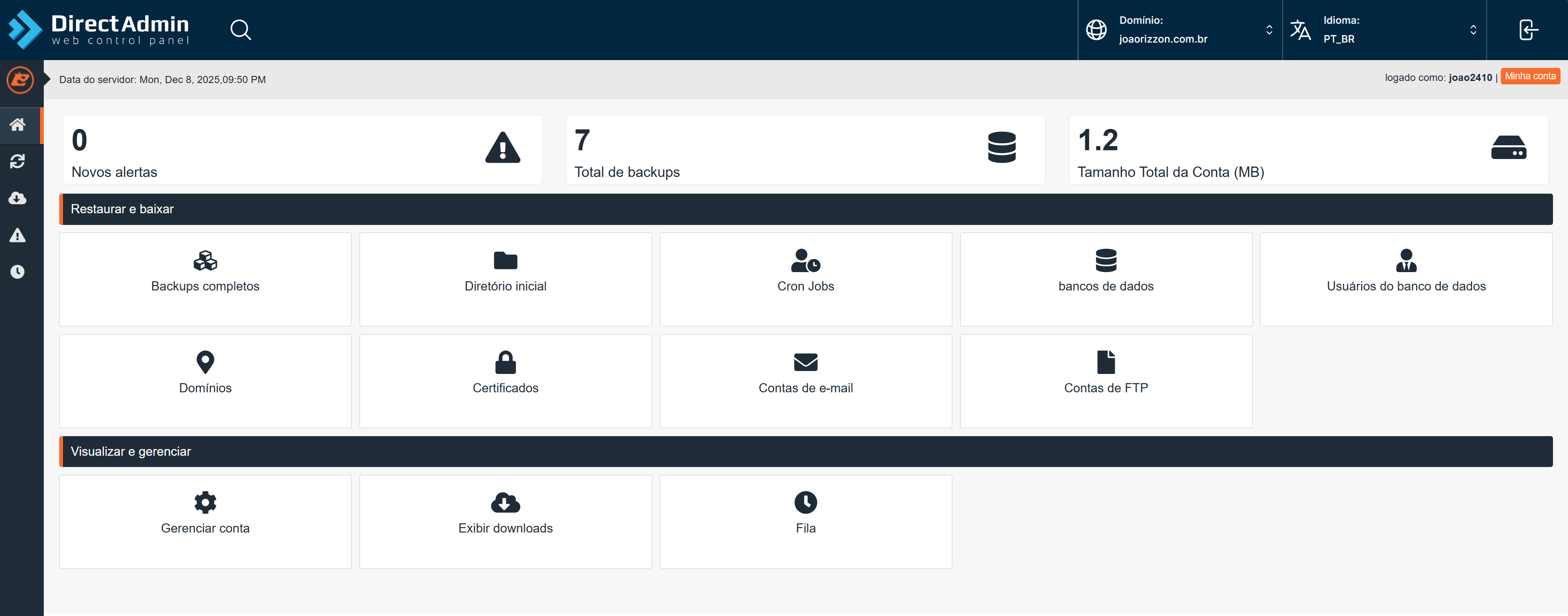 Se o objetivo é gerar um backup completo da conta para download ou migração, use o menu Criar/restaurar backups do próprio DirectAdmin.
